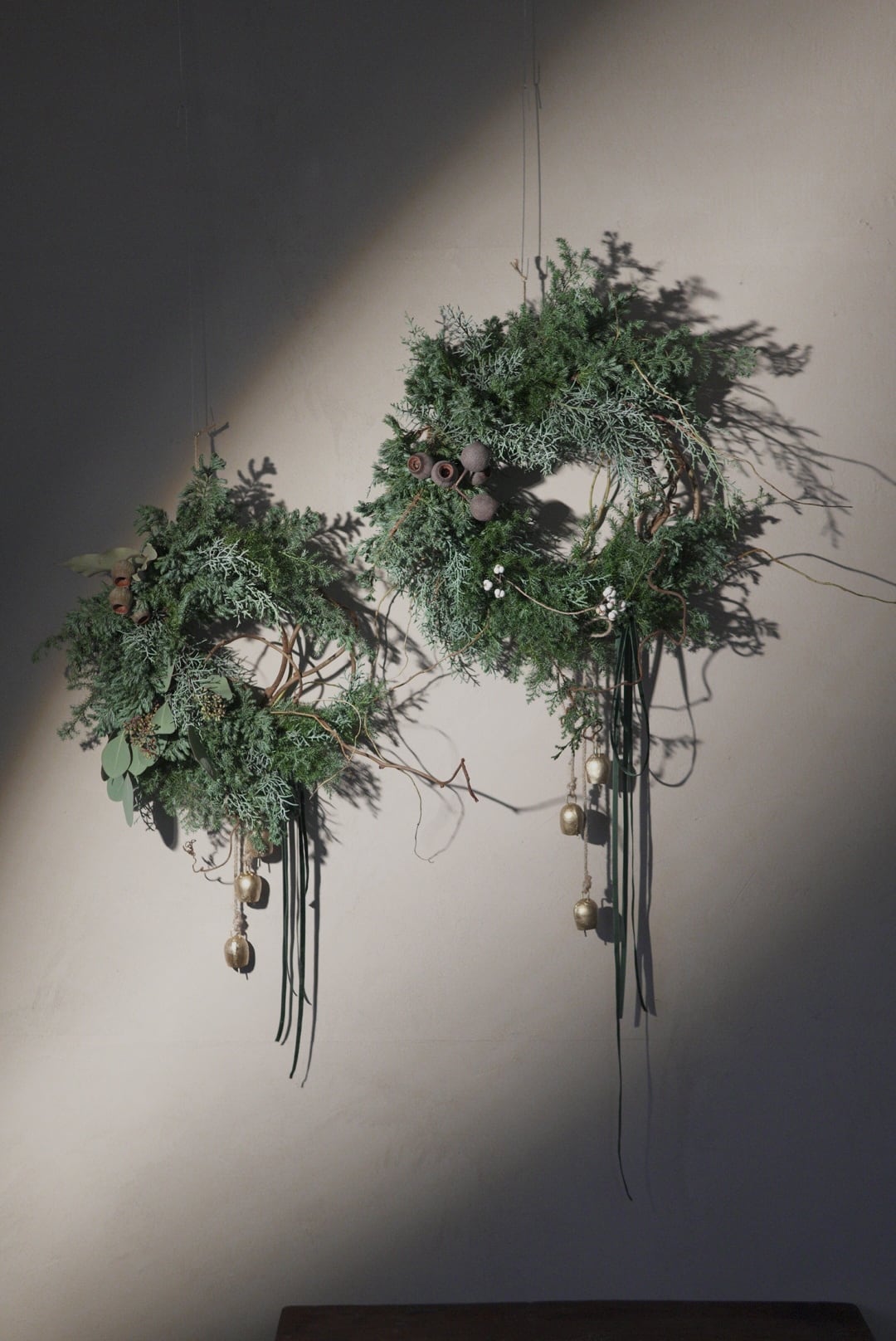 乾くまでは時々壁やドアから外し、葉をふんわりと良い位置に動かし平置きにしてあげるときれいな形に乾いていきます。